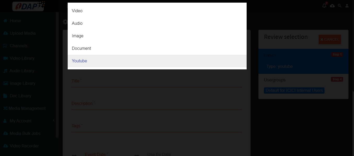 Select Type of Media as ‘YouTube’ .