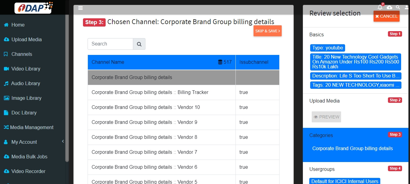 Select Channel in which the video is to be uploaded.