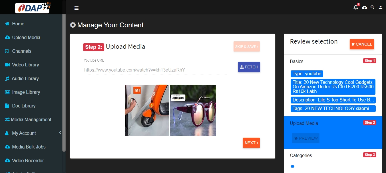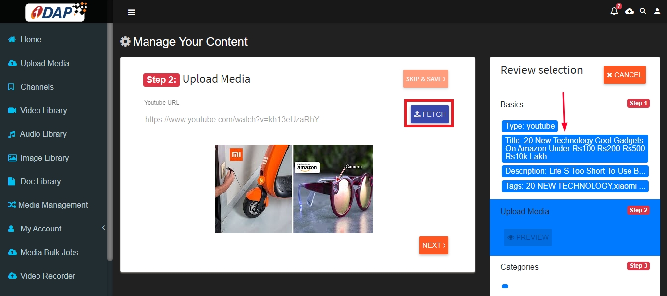 Paste URL of the video from YouTube in the window and click ‘Fetch Video’. All the relevant information will be filled automatically in the fields.