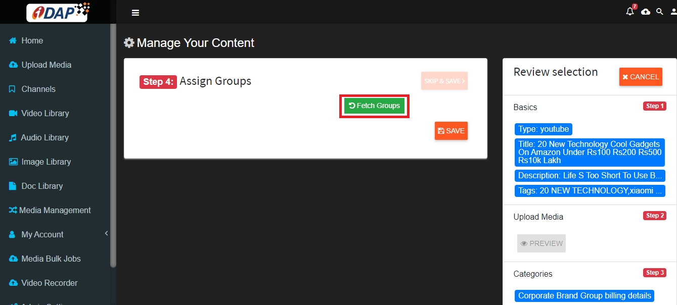 For selecting Groups click on Fetch Groups .
